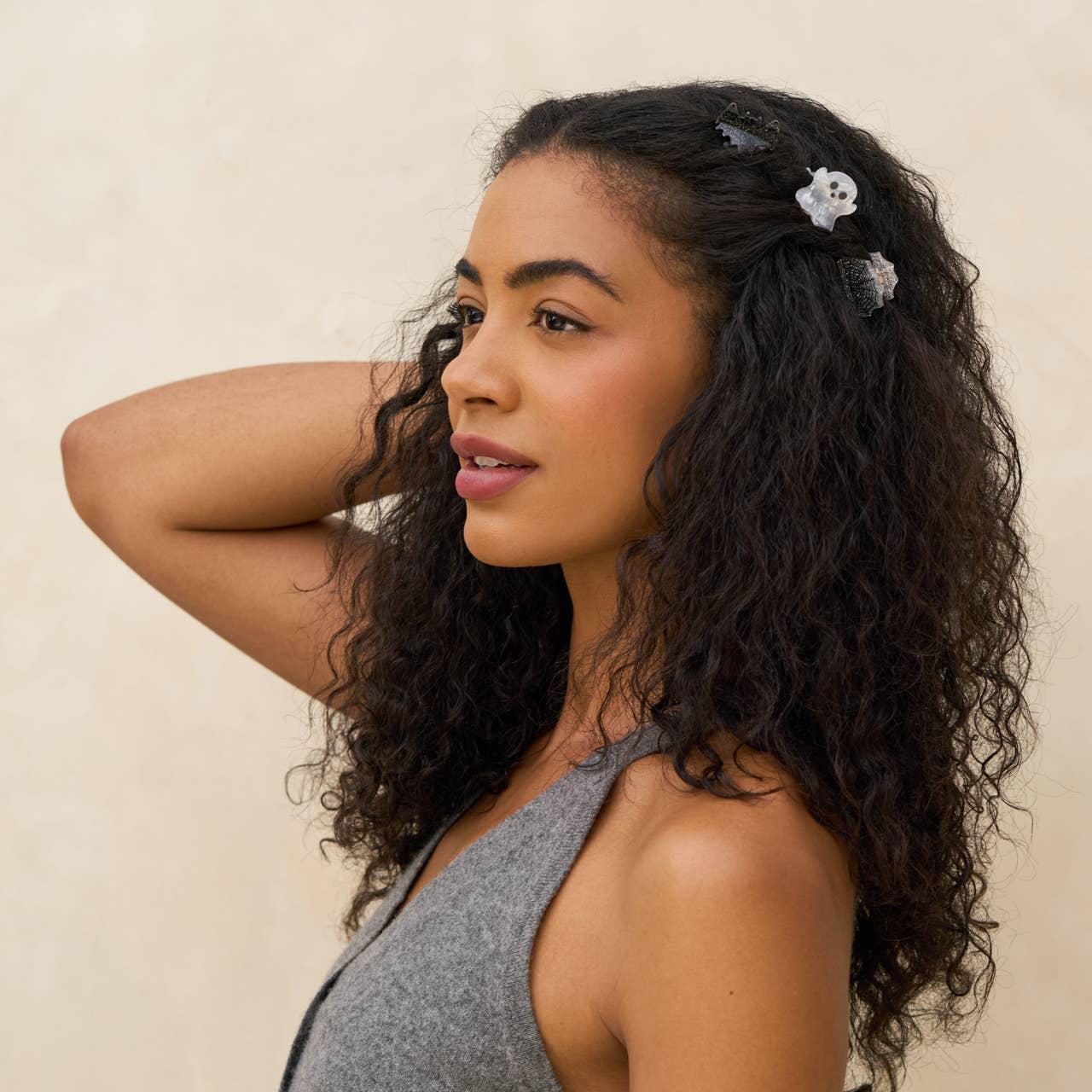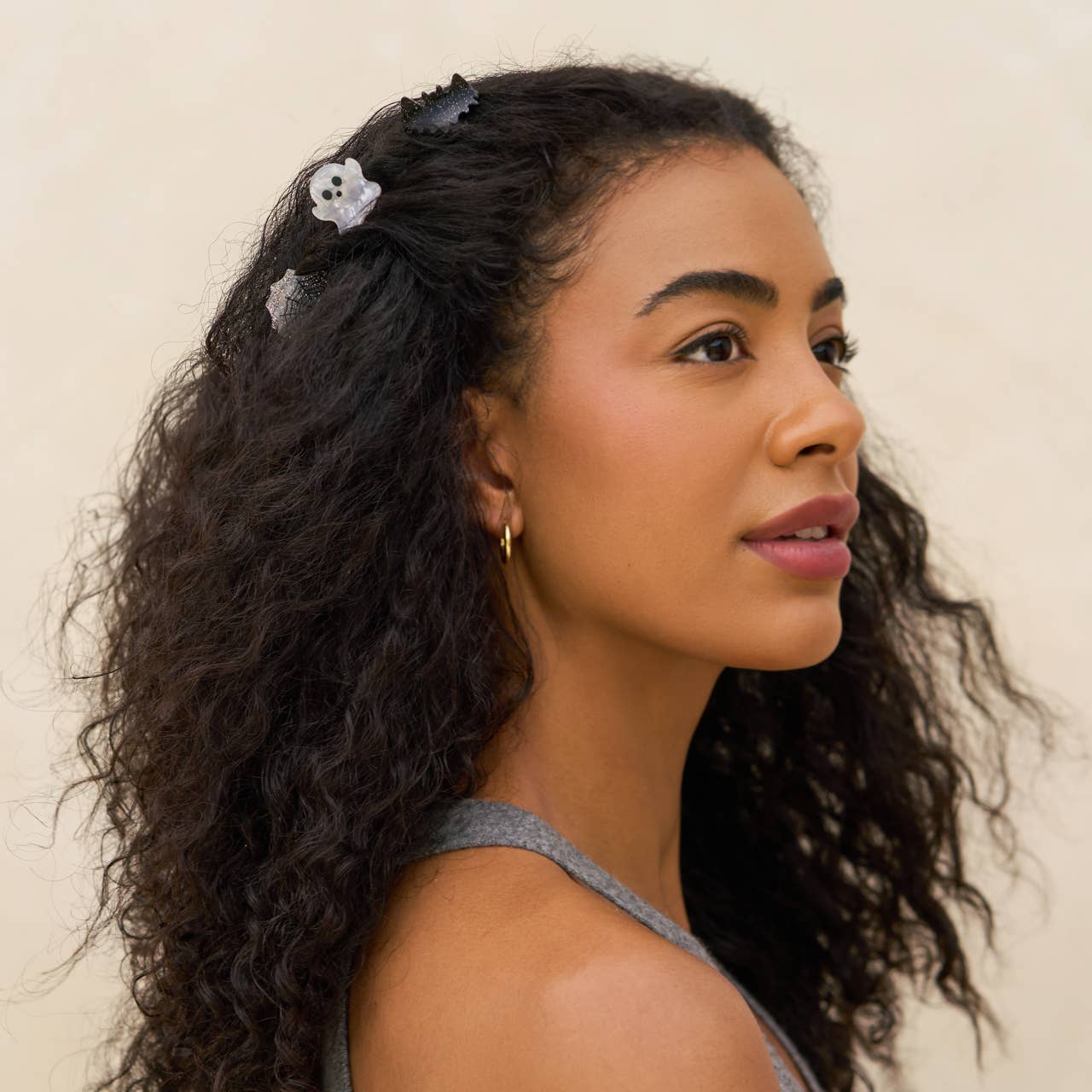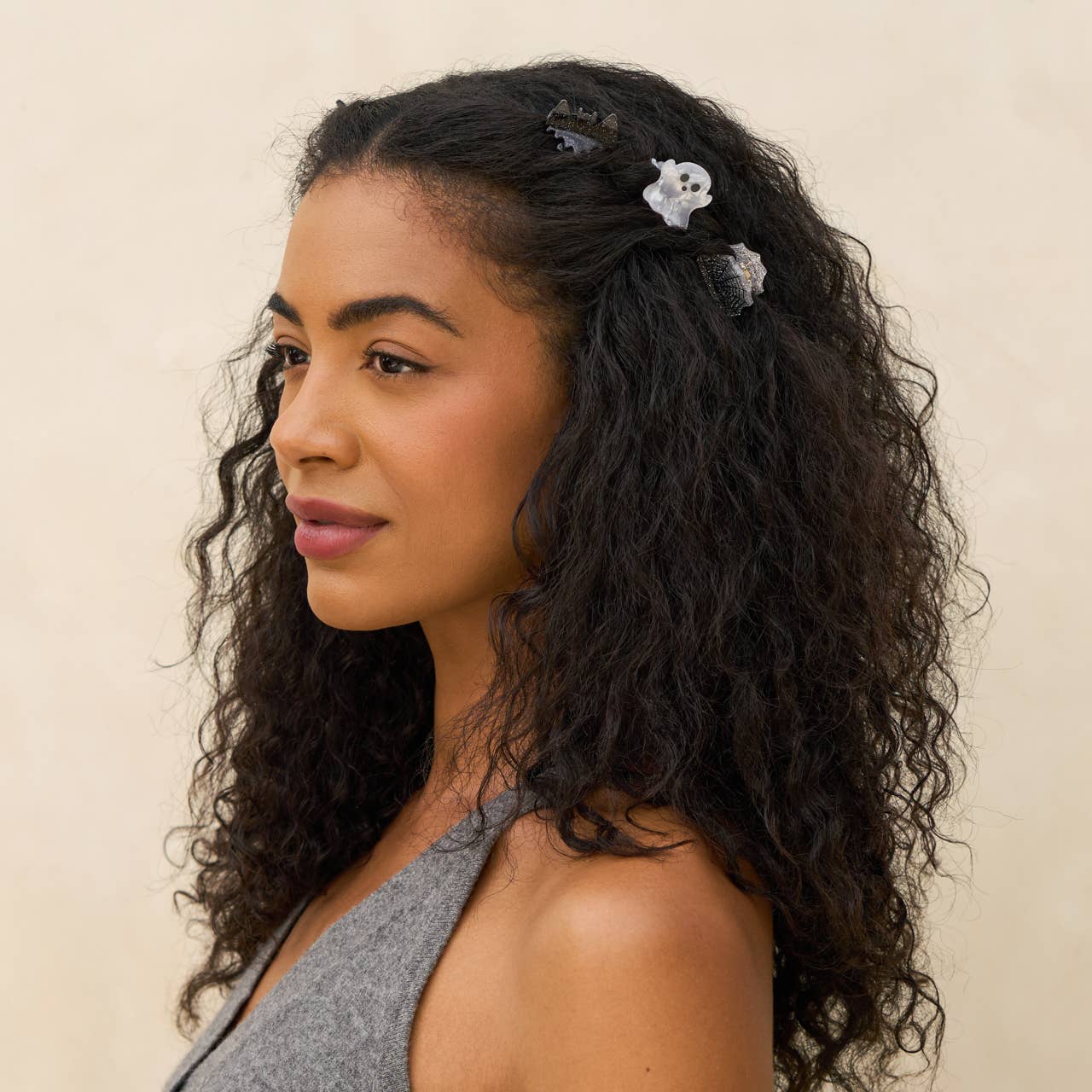 The Mini Claw Clips 6pc Set - Halloween from KITSCH is perfect for adding a spooky touch to your hairstyle this Halloween season. Crafted from recycled materials, these clips are not just stylish but also sustainable. They're a fun way to express your festive spirit and commitment to the environment. Whether you're dressing up for a party or want to add a bit of holiday flair, these clips are a hair accessory must-have. Elevate your beauty routine with KITSCH's reliable and sustainable solutions.